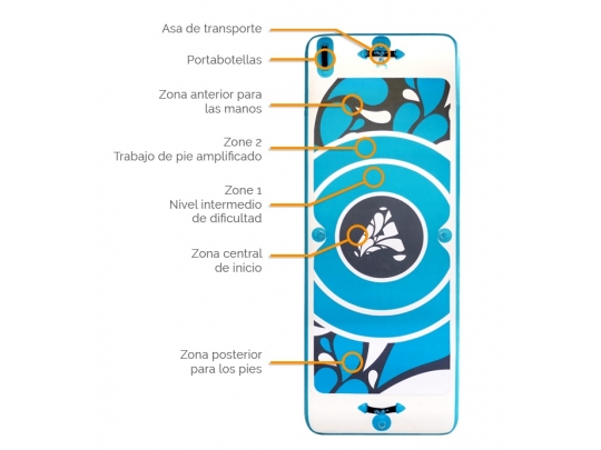 Esta colchoneta única le permite al entrenador estructurar su curso para facilitar el aprendizaje del usuario. Apreciarás su revestimiento antideslizante en eva muy suave para la comodidad del usuario, así como su ancho grande (81 cm) que le da una excelente estabilidad, incluso para posturas de yoga complejas.