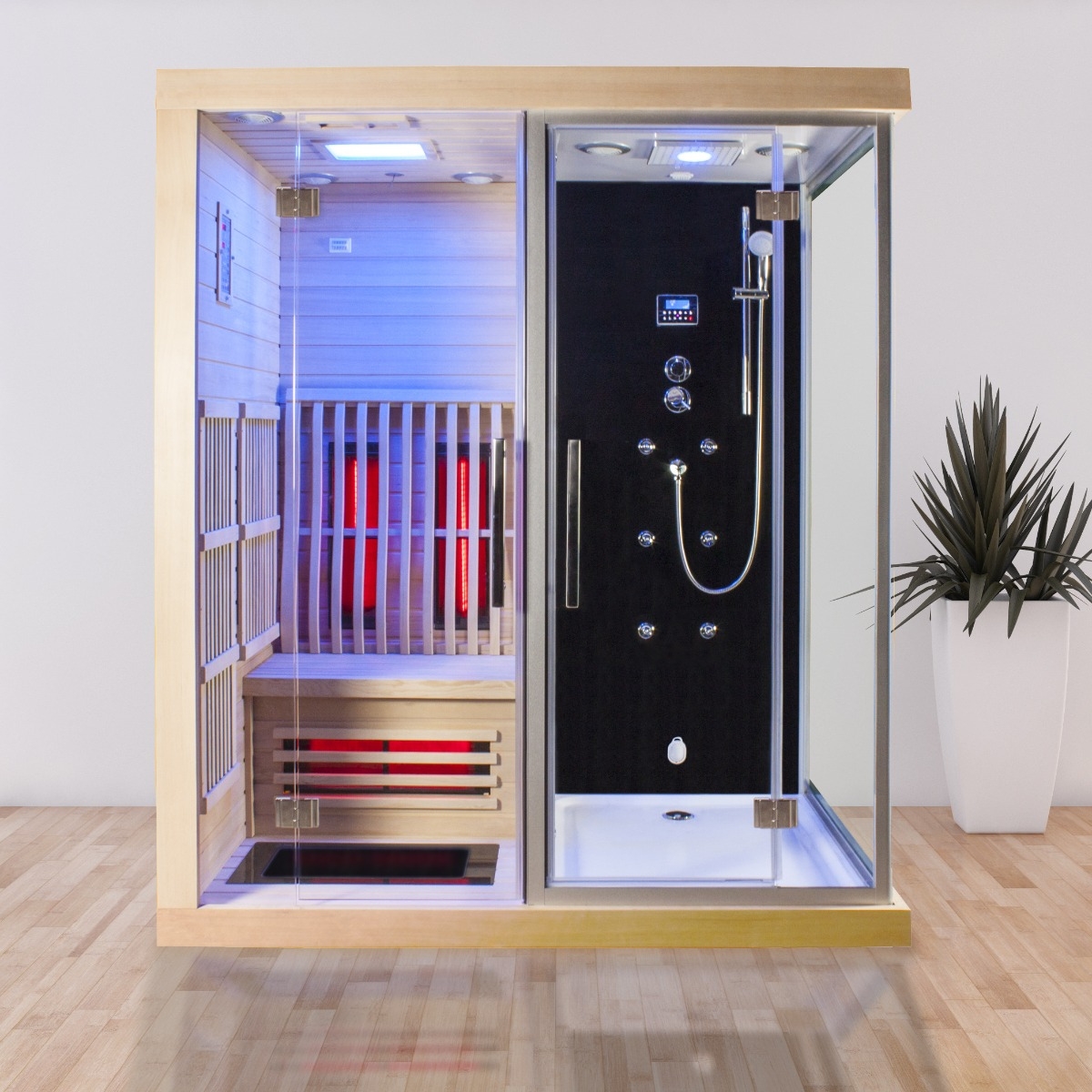 CABINA DE HIDROMASAJE + SAUNA DE VAPOR + SAUNA DE INFRARROJOS