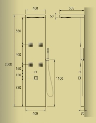 - Accesorios: Flexo de acero 150 cm. + Mango de ducha