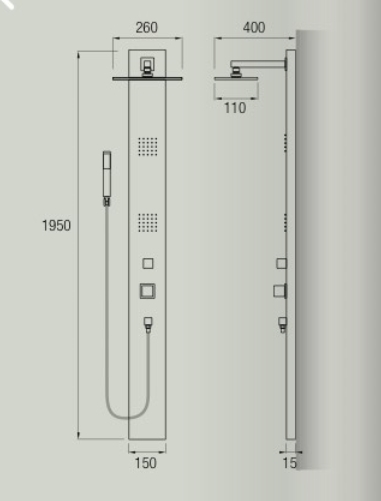 - Accesorios: Flexo de acero 150 cm. + Mango de ducha
