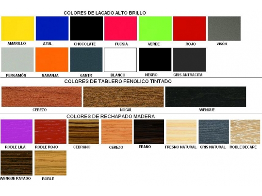 POSIBILIDAD DE MADERAS Y LACADO EN COLORES